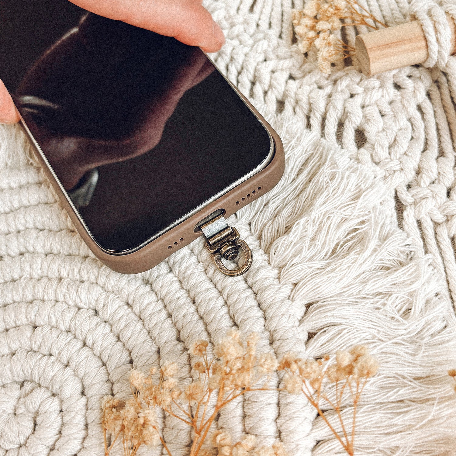 Make sure your phone case has a charging-port opening wide enough to fit the tether tab loop. A standard 12mm opening fits the 8mm × 6mm loop comfortably.