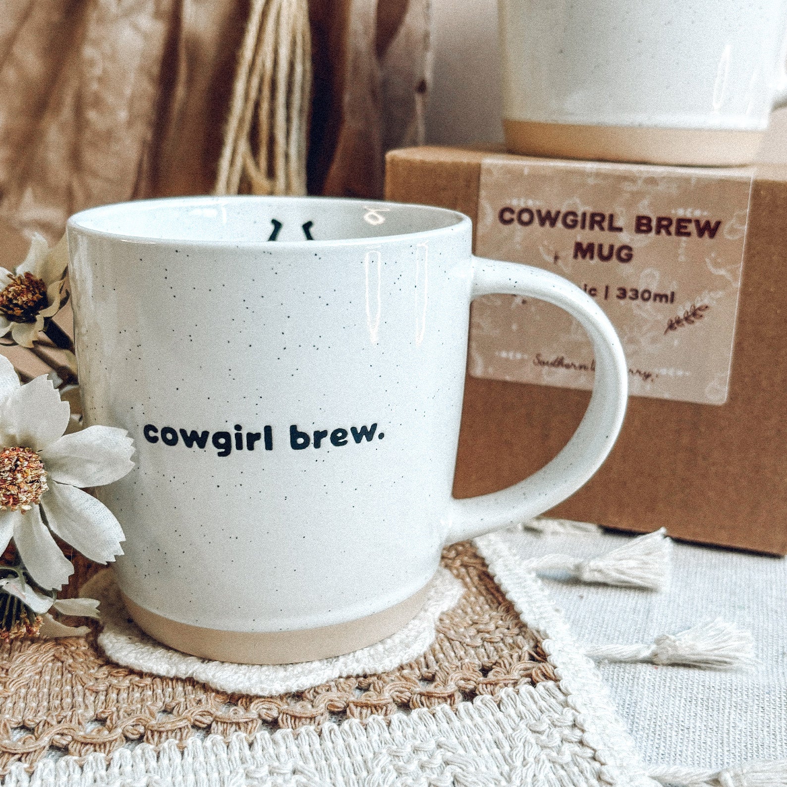 For the cowgirls who start their day with coffee and a little country soul. The Cowgirl Brew mug pairs rustic texture with a soft speckled glaze and an debossed design that feels like home. It’s your new favourite mug for slow mornings, sweet tea breaks and everything in between.