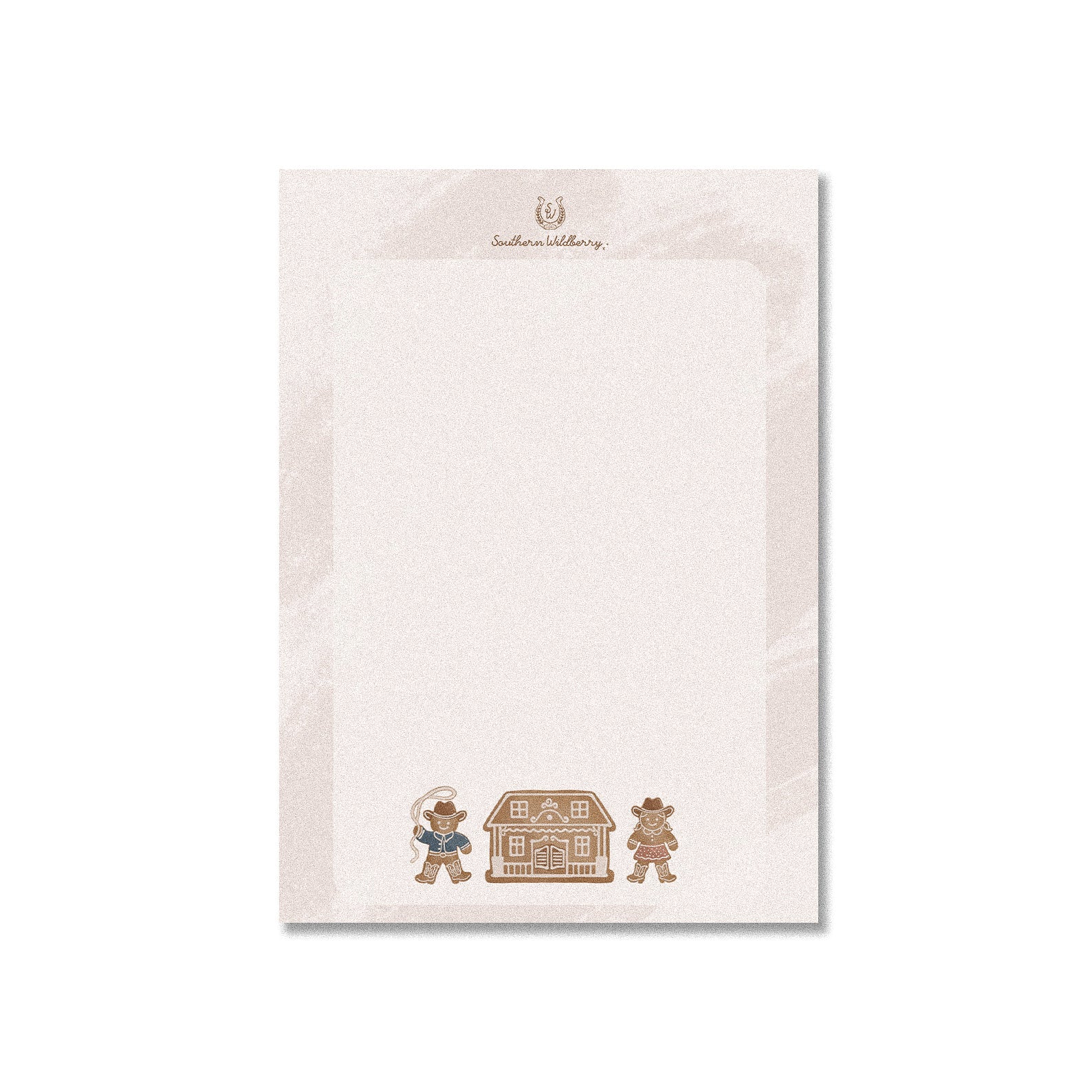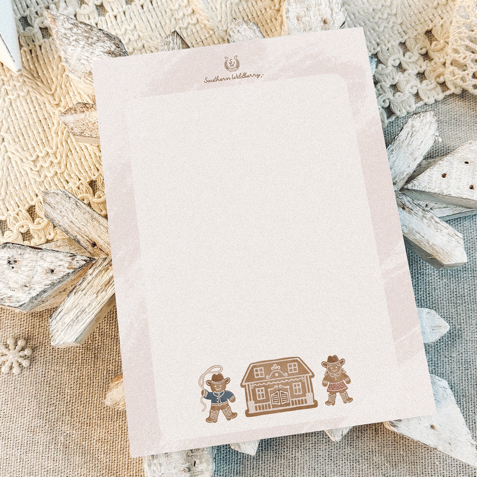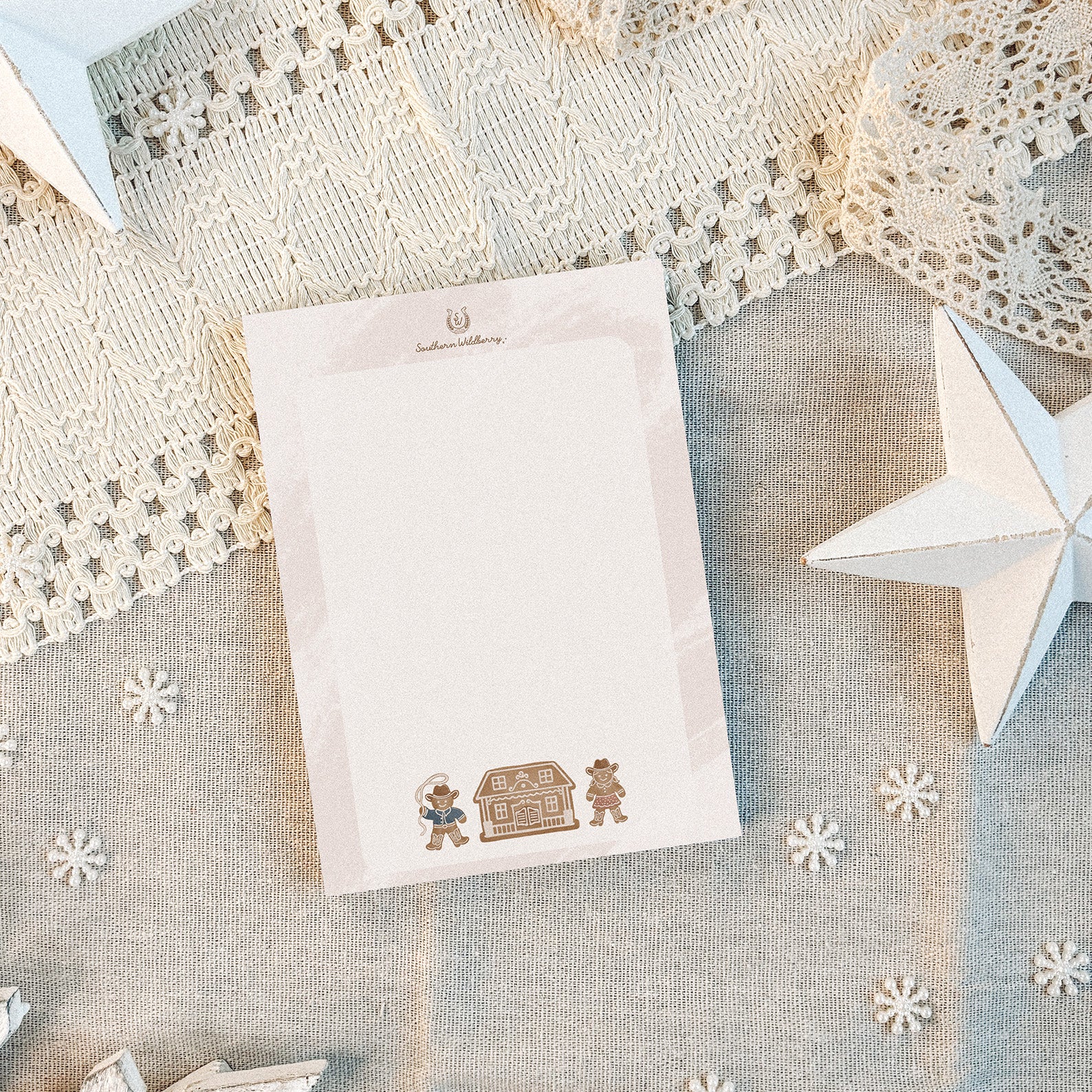 A little sweetness for every scribble. This festive notepad features a gingerbread cowboy, cowgirl, and ranch design at the centre, with plain pages ready for reminders, sketches, or whatever you dream up. A cosy desk companion for the season straight from the Gingerbread Ranch.