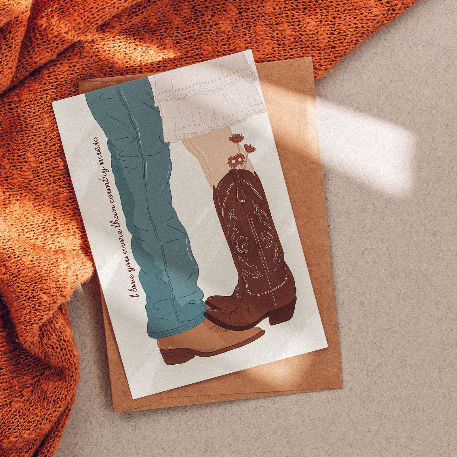 Say it with country charm. The I Love You More Than Country Music card pairs rustic western style with a romantic message that’s bound to make them smile. Perfect for anniversaries, Valentine’s, or just letting your favourite cowboy or cowgirl know how much they mean to you.