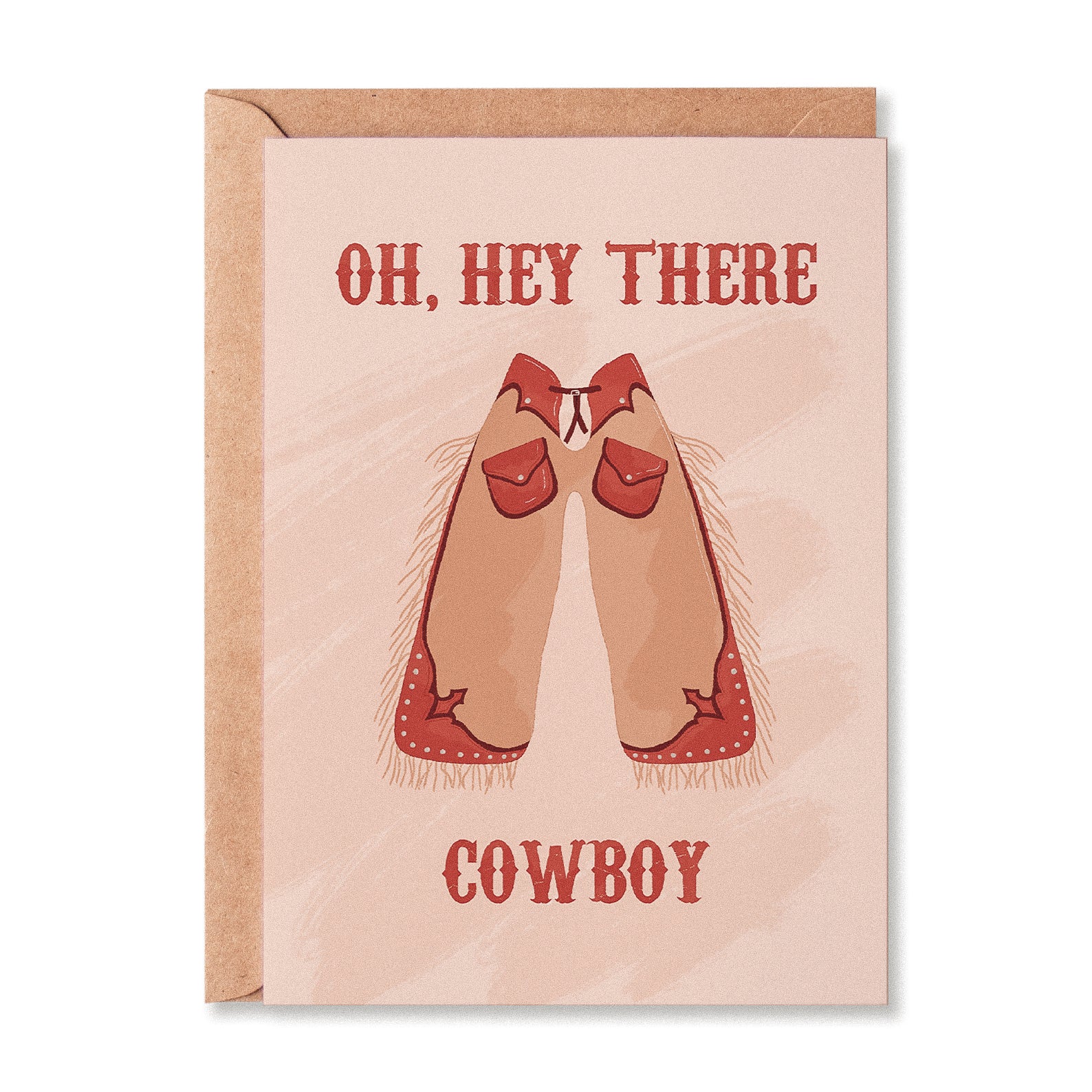 Oh hey there! This cowboy card features a playful chaps trouser illustration that’s perfect for birthdays, anniversaries, or simply sending a western hello. A fun way to share a smile with your favourite cowboy.